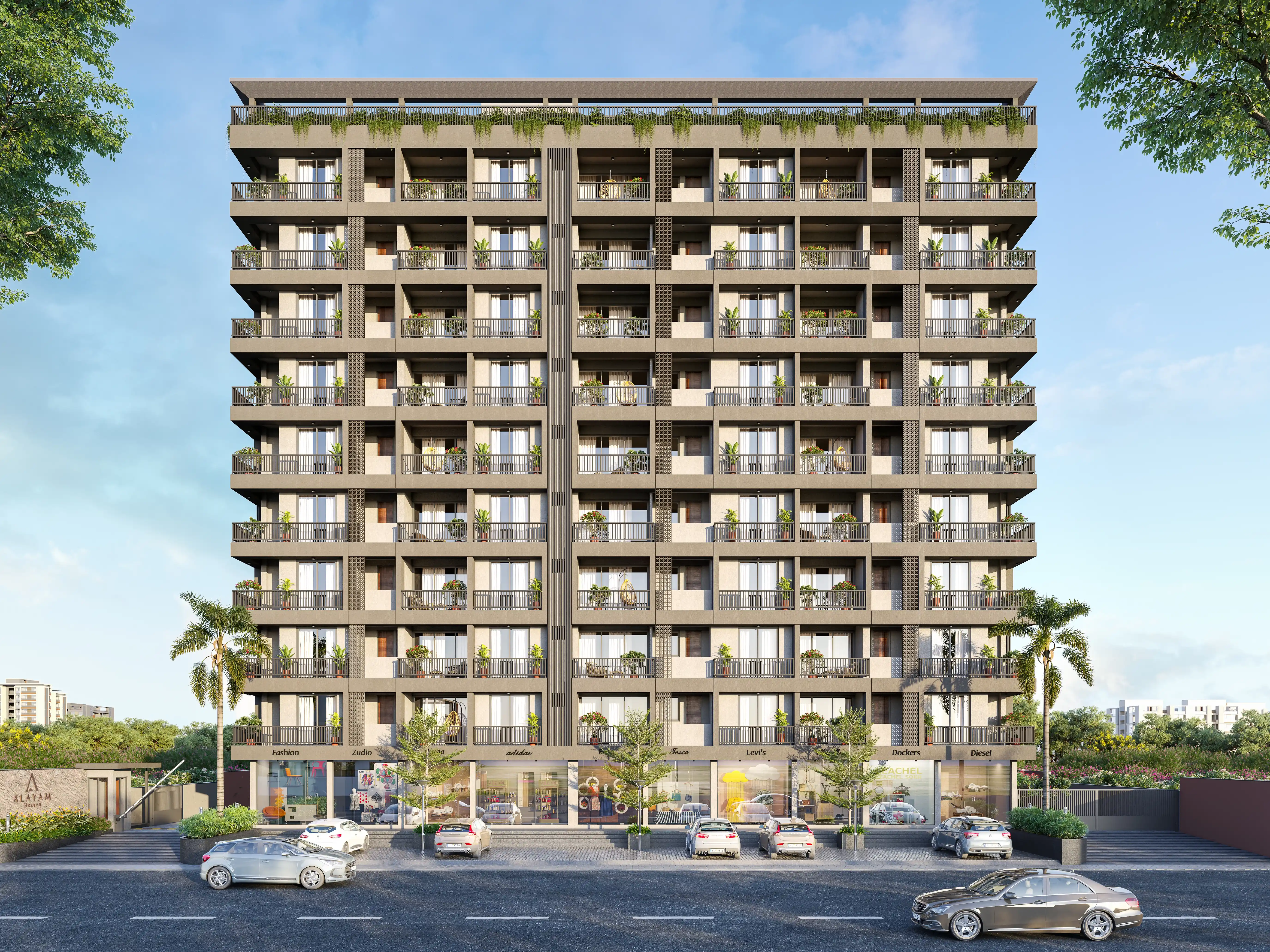 Alayam Heaven is designed around everyday comfort — smart layouts, natural light, and airy balconies. The community features residential 2BHK units alongside thoughtfully designed retail spaces for a vibrant, mixed-use neighborhood. Located in Vaishnodevi, behind Nirma University, it offers a serene environment close to nature.